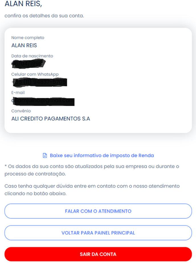- [Nome do Cliente] o seu informativo de imposto de Renda é obtido direto pelo site da Ali. Após logar no www.ali.com.vc você deve clicar em seu nome no canto superior direito da tela, você será direcionado a outra tela onde aparecerá a opção: Baixe seu informativo de imposto de Renda. É só selecionar essa opção e baixar o documento no seu aparelho.