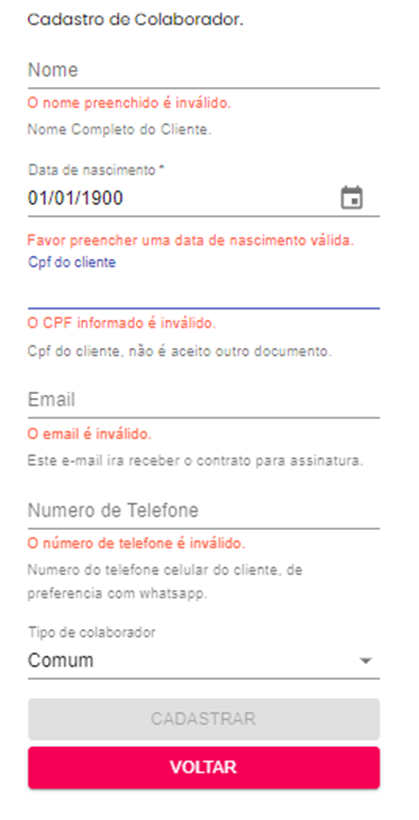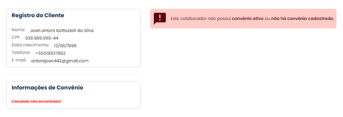 Quando o sistema não é capaz de associar um colaborador em uma empresa, mas o colaborador informa que a empresa que trabalha possui convênio com a Ali, então o contato é transferido a um Agente. Ao atender o cliente, o Agente não identifica o cadastro, solicita o contracheque ao cliente e, ao identificar a empresa conveniada, realiza o cadastro manualmente daquele CPF.