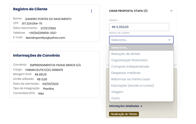 1. Abra o Portal de Operações e consulte o CPF do cliente para acessar o simulador de propostas: