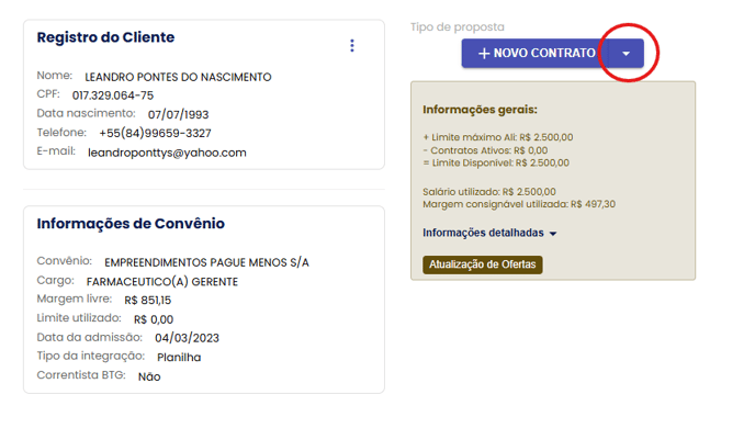 OBS: É fundamental validar se o limite disponível cobre o consignado que será portado para Ali, se a dívida for maior do que o limite liberado, não é possível seguir com a operação.