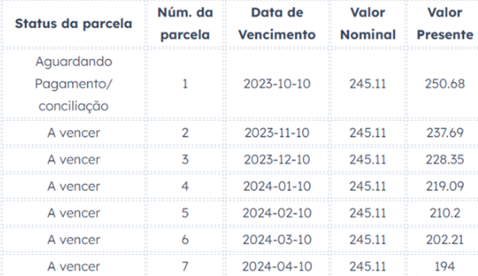 Saldo devedor é o valor atualizado da dívida do cliente com a Ali, com amortização de juros das parcelas ainda não vencidas.