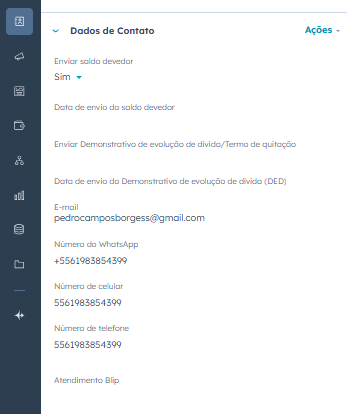 2 - Do lado esquerdo procure a aba Dados de contato, após é somente seguir o passo-a-passo e preencher os campos abrigatórios;